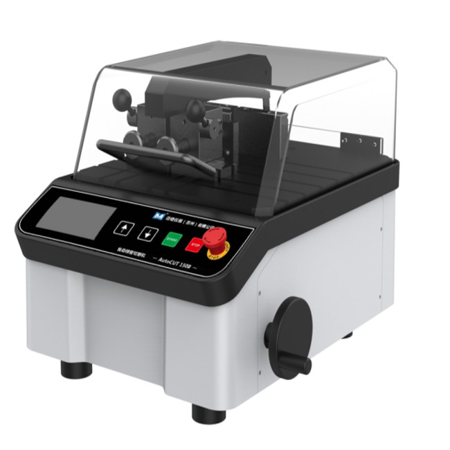 O AutoCUT 150B é uma seção tabletop da precisão viu com capacidades automáticas e manuais do corte. Esta é uma máquina de corte versátil projetada secionando as placas de circuito e a uma variedade de outra amostra que cortam aplicações, tais como metais, prendedores, rochas e cerâmica, polímeros, compostos, eletrônica, semicondutores, matérias biológicos, etc.